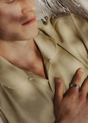 O anel possui um acabamento high polished, concebido para resistir à oxidação e manter o brilho ao longo do tempo. O fecho tipo pearl-clasp garante uma fixação segura e estética.